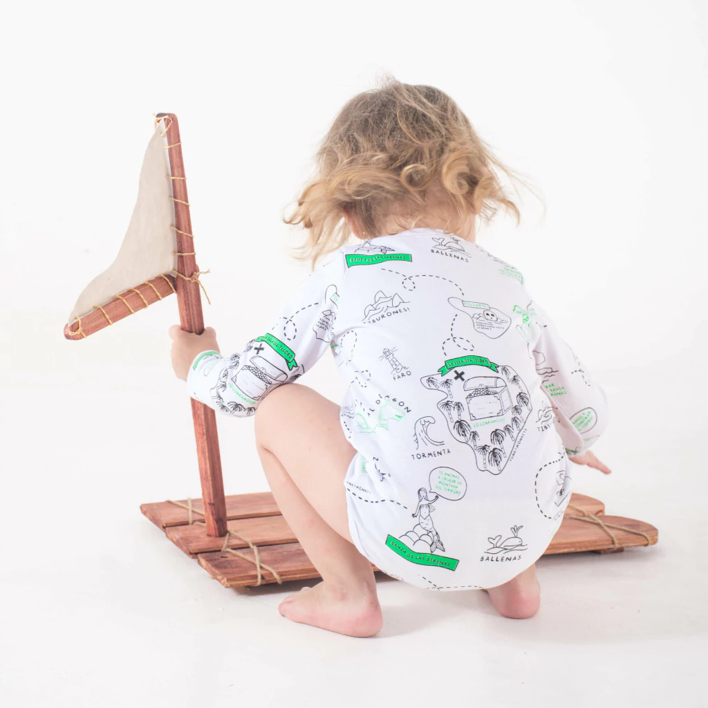 Estampado artesanalmente utilizando tintas al agua seguras para tu bebé.