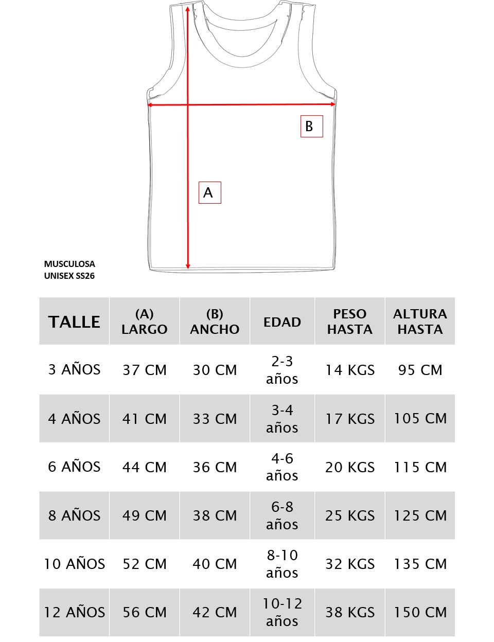 Para elegir el mejor talle te sugerimos chequear las medidas en la siguiente tabla, y ante la duda elegir el talle más grande. ¡Crecen tan rápido!